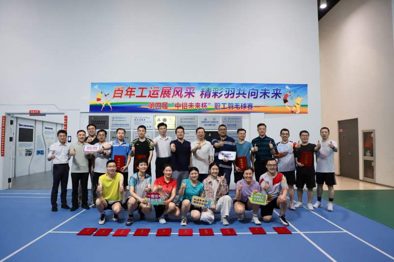 6月17日至19日,由中铝资产、中铝环保、中铝科学院、中铝材料院联合举办的“百年工运展风采 精彩羽共向未来”暨第四届“中铝未来杯”职工羽毛球赛在中铝科创园成功举办,来自四家单位的55名羽毛球爱好者挥拍上阵、以球会友,共同上演57场精彩比拼,吸引上百名职工现场观战,呈现了一场蓬勃向上、热情洋溢的文化体育盛宴。中铝科学院工会主席王光辉、中铝资产工会主席孟林,中铝环保工会主席许敦歌出席开幕式。