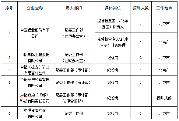 中国铝业集团有限公司二级单位纪委2026年度社会招聘公告
