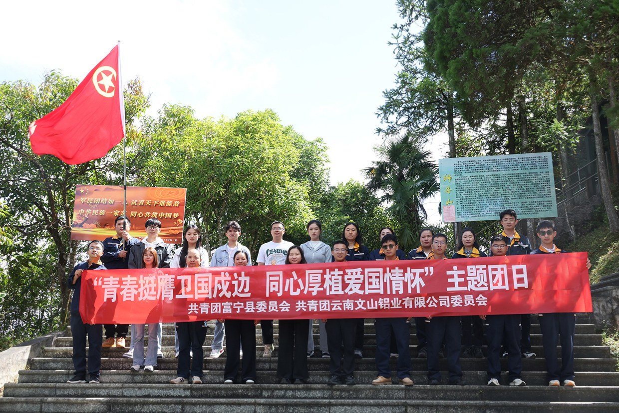 本网讯 近日,云铝文山团委联合富宁团县委在狮子山红色教育点开展“青春挺膺卫国戍边 同心厚植爱国情怀”主题团日,团员青年前往468联防所,为值守人员送去米、油、矿泉水等慰问物资并跟随他们徒步巡边。大家表示,将把爱国热情转化为岗位担当,立足本职、攻坚克难,以实际行动为公司高质量发展贡献青春力量。